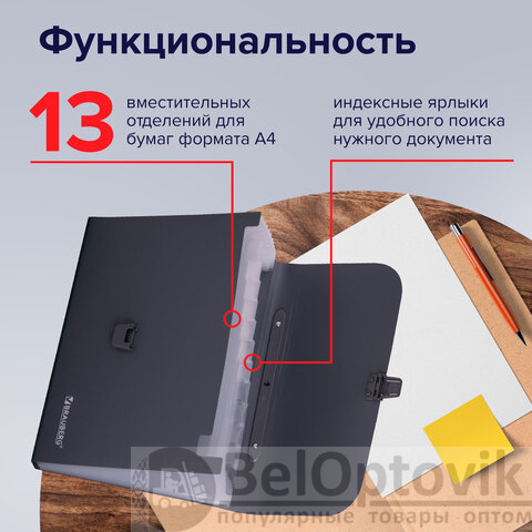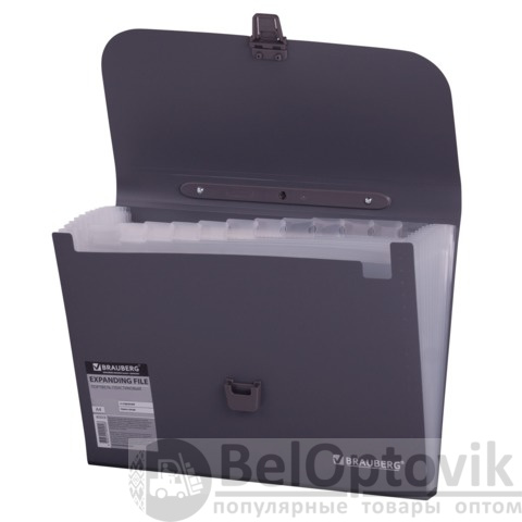 Папка-портфель пластиковая BRAUBERG А4 (327х254х30 мм), 13 отделений, серая, 221438