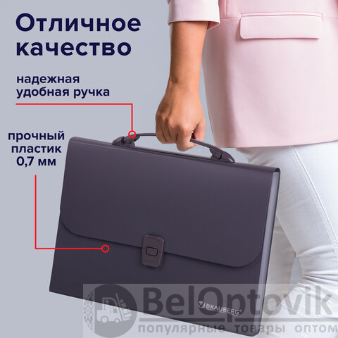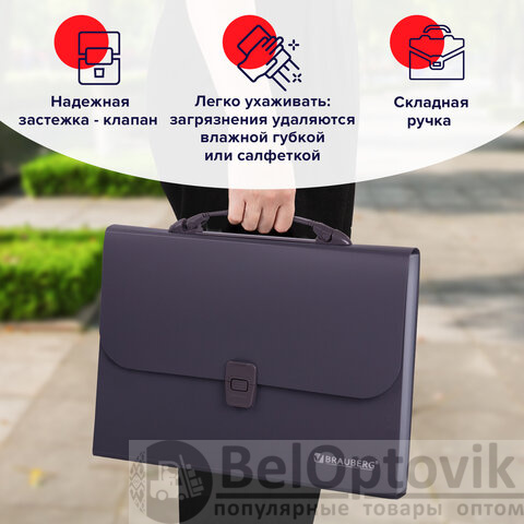 Качественное и безопасное хранение документов, удобство переноски и стильный дизайн. Благодаря папке-портфелю вы сможете контролировать рабочий процесс и подчеркнете свой профессионализм. Приобретайте папку-портфель BRAUBERG прямо сейчас!