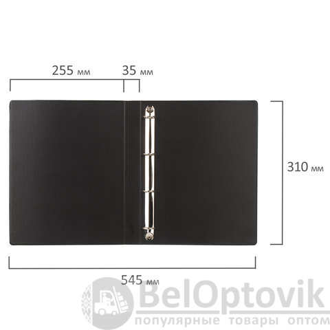 Папка на 4 кольцах BRAUBERG, картон/ПВХ, 35 мм, черная, до 250 листов (удвоенный срок службы), 221483