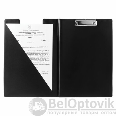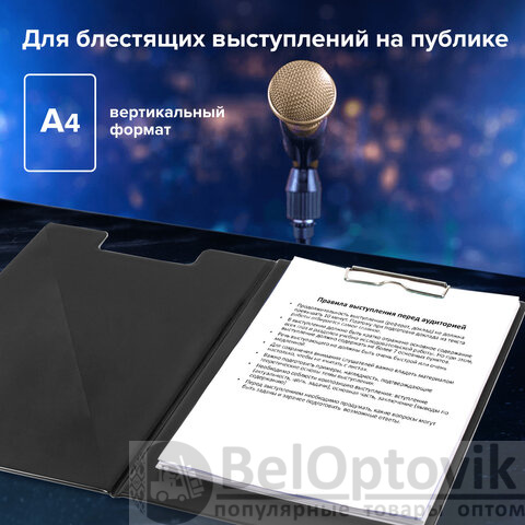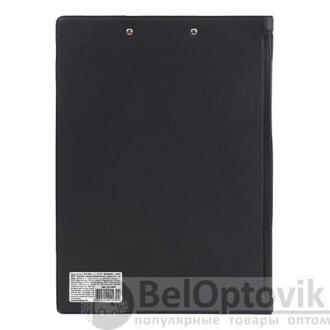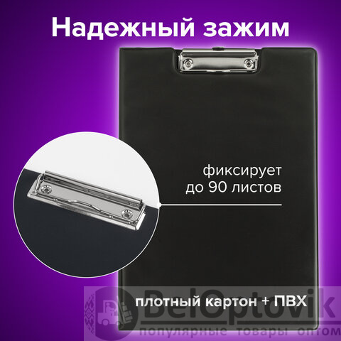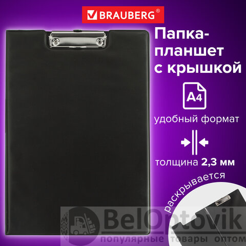 Папка-планшет BRAUBERG, А4 (340х240 мм), с прижимом и крышкой, картон/ПВХ, РОССИЯ, черная, 221488