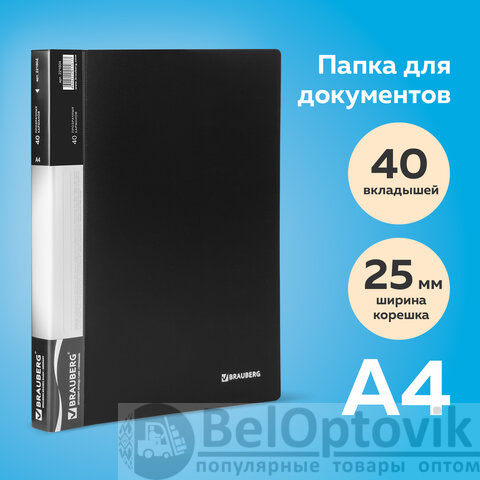 Папка BRAUBERG "Стандарт" классического черного цвета отлично подходит для хранения документов, составления каталогов, меню и т.п.