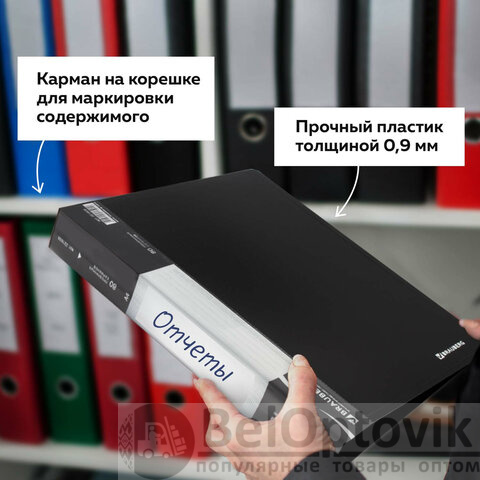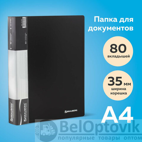 Папка BRAUBERG "Стандарт" классического черного цвета отлично подходит для хранения документов, составления каталогов, меню и т.п.