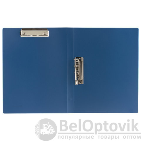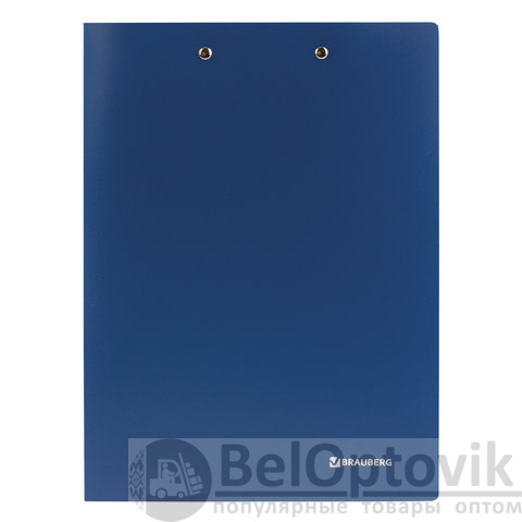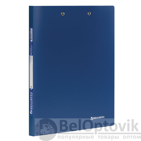 Папка с 2-мя металлическими прижимами BRAUBERG стандарт, синяя, до 100 листов, 0,6 мм, 221625