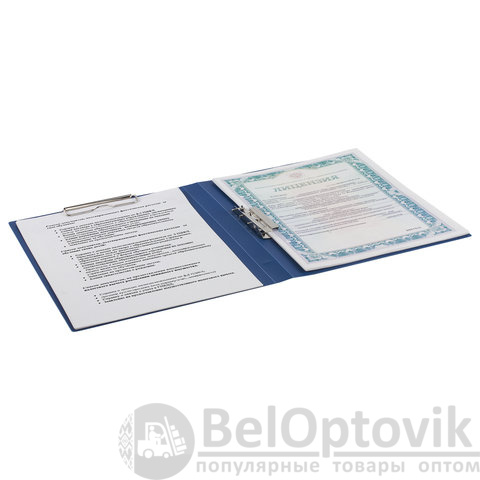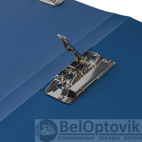 Изготовлена из высококачественного пластика синего цвета толщиной 0,6 мм с фактурой "песок". Обеспечивает хранение до 100 листов формата А4. Снабжена боковым прижимом. Для идентификации имеется бумажный корешок. Поставляется в индивидуальной упаковке.