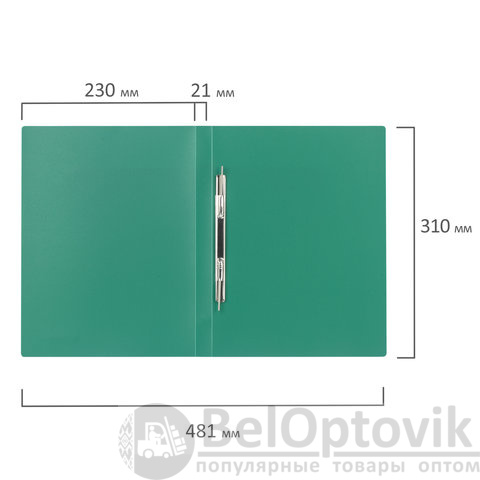 Изготовлена из высококачественного пластика зеленого цвета толщиной 0,6 мм с фактурой "песок". Обеспечивает хранение до 100 листов формата А4. Металлический скоросшиватель с пружинным механизмом обеспечит надежную фиксацию документов. Для идентификации папки имеется бумажный корешок. Поставляется в индивидуальной упаковке.
