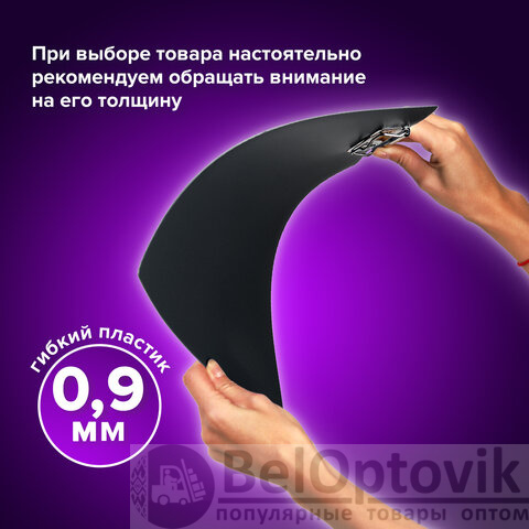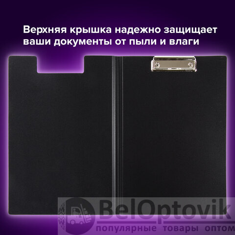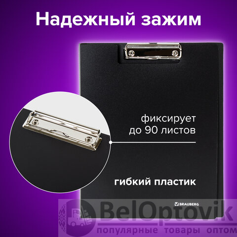 Папка-планшет BRAUBERG "Стандарт", А4 (310х230 мм), с прижимом и крышкой, пластик, черная, 0,9 мм, 221646