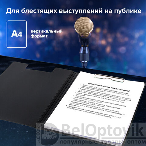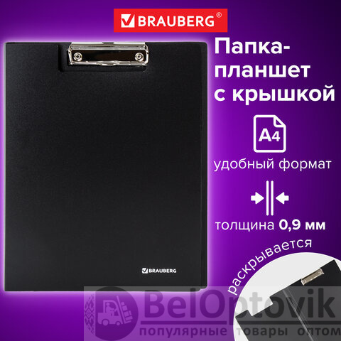 Папка-планшет BRAUBERG "Стандарт" используется для работы со счетами, накладными и другими документами. Незаменима при работе на складе, в магазине, при участии в конференциях, выставках и других публичных выступлениях.