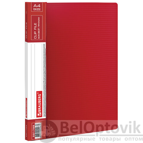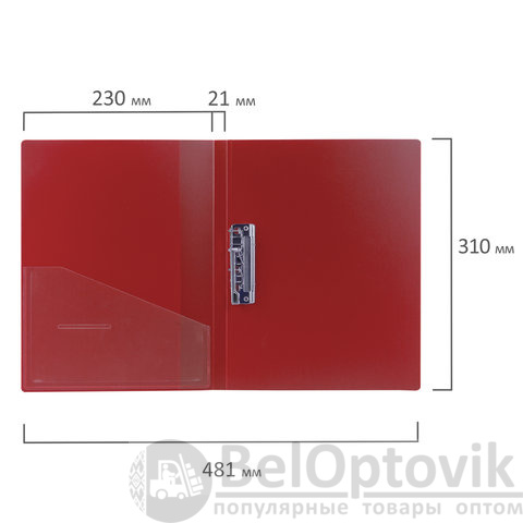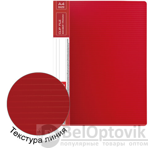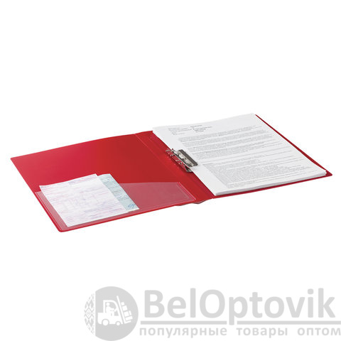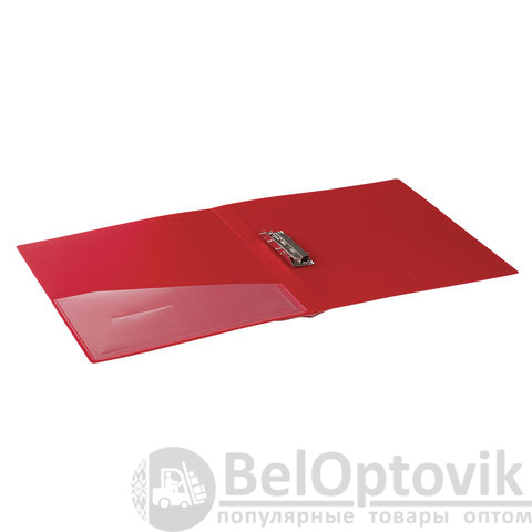 Изготовлена из высококачественного пластика толщиной 0,7 мм с оригинальной линейной фактурой. Обеспечивает хранение до 100 листов формата А4. Снабжена боковым прижимом и прозрачным внутренним карманом. Для идентификации имеется сменный бумажный корешок. Представлена в красном цвете. Поставляется в индивидуальной упаковке.
