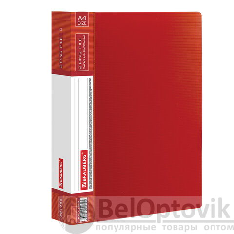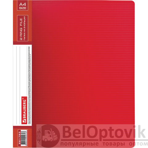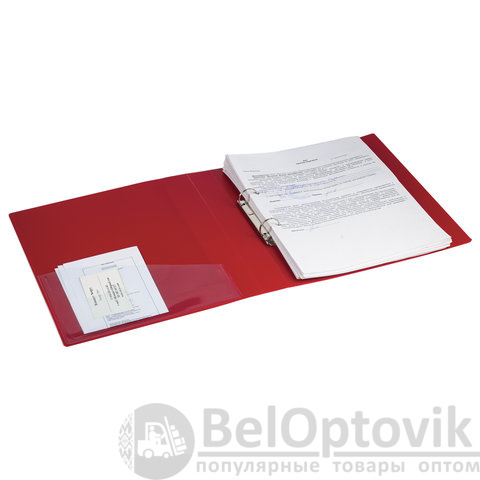 Папка на 2 кольцах BRAUBERG "Contract", 35 мм, красная, до 270 листов, 0,9 мм, 221793