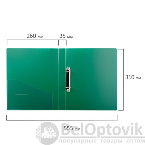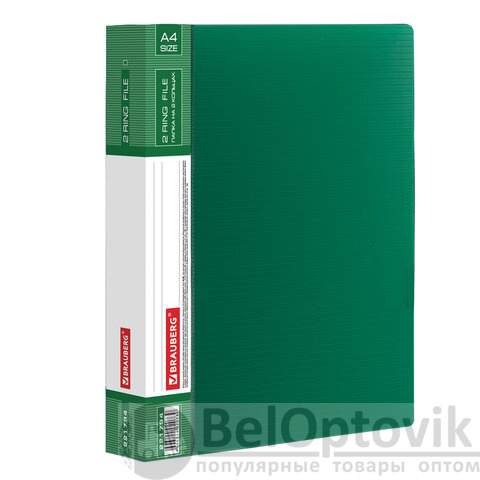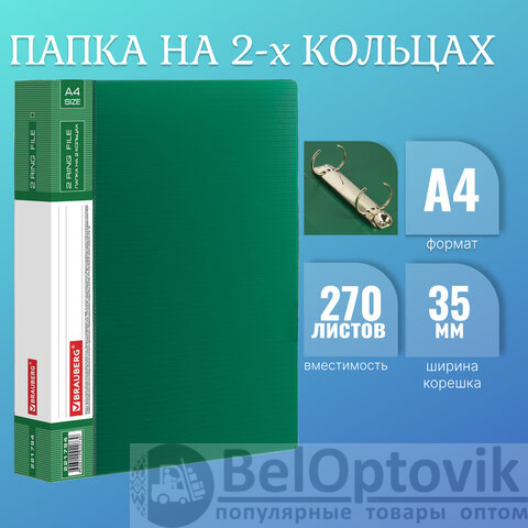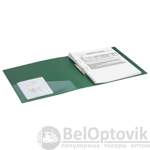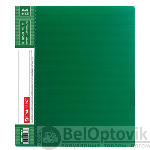 Папка на 2 кольцах BRAUBERG "Contract", 35 мм, зеленая, до 270 листов, 0,9 мм, 221794