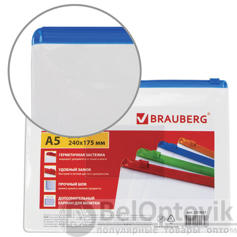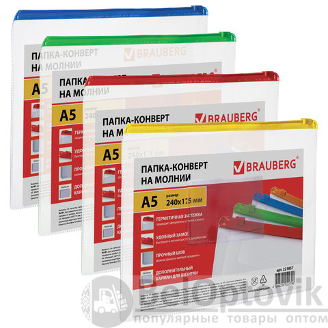 Удобное хранение, быстрый доступ и надежная защита для ваших важных документов. Приобретайте папки-конверты на молнии BRAUBERG. Оформление заказа займёт считаные секунды.