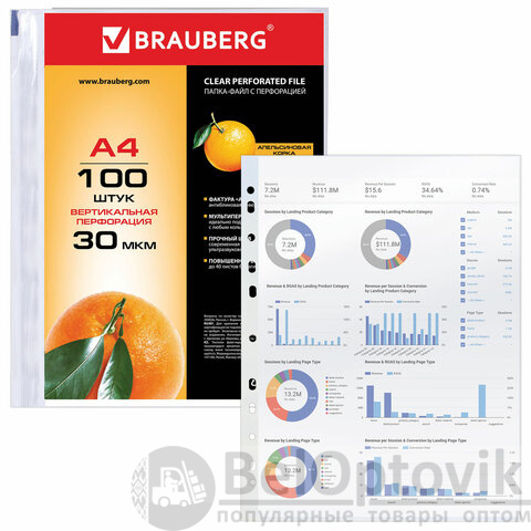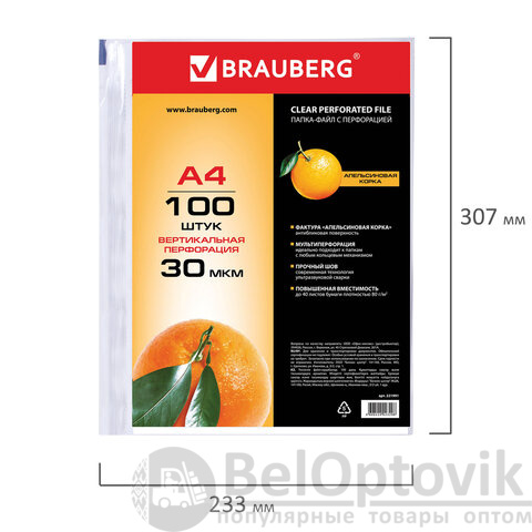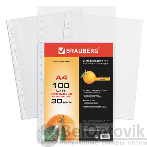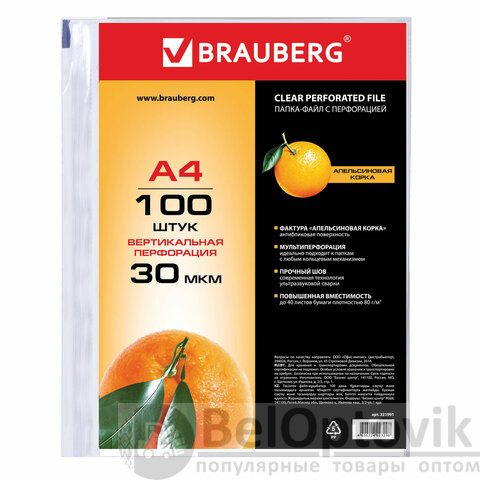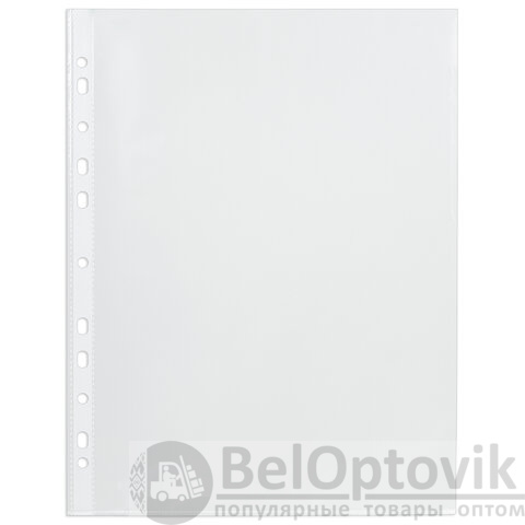 Прозрачная перфорированная папка-файл BRAUBERG "STANDARD" совместима с любыми видами архивных папок. Антибликовая поверхность «апельсиновая корка» позволяет копировать документы, не вынимая их из папки.