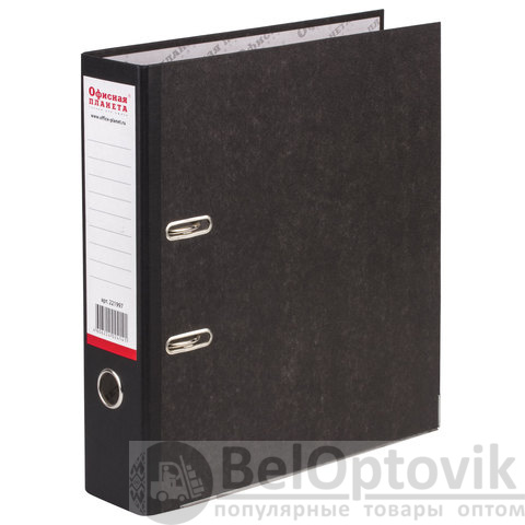 Папка-регистратор ОФИСНАЯ ПЛАНЕТА, усиленный корешок, мраморное покрытие, 80 мм, с уголком, черная, 221997