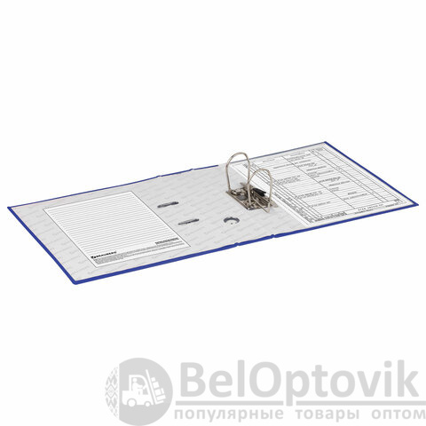 Папка формата А4 с вертикальной ориентацией изготовлена из качественного износоустойчивого картона с ламинированным бумажным покрытием. Благодаря такому плотному покрытию допустима влажная уборка изделия. Ширина корешка в 75 мм позволяет разместить до 500 листов. Прорези для колец на внешней крышке позволяют оставаться папке закрытой даже при большом количестве бумаг, а надежный арочный механизм легко справляется с ежедневными нагрузками. Корешок снабжен этикеткой для маркировки содержимого, что позволяет структурировать информацию. Такая папка станет незаменимым помощником для работников с документацией, а насыщенный синий цвет папки-регистратора выделит ее в ряду других.