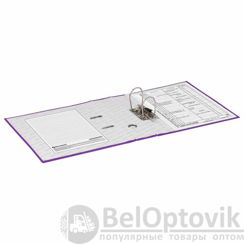 Папка формата А4 с вертикальной ориентацией изготовлена из качественного износоустойчивого картона с ламинированным бумажным покрытием. Благодаря такому плотному покрытию допустима влажная уборка изделия. Ширина корешка в 75 мм позволяет разместить до 500 листов. Прорези для колец на внешней крышке позволяют оставаться папке закрытой даже при большом количестве бумаг, а надежный арочный механизм легко справляется с ежедневными нагрузками. Корешок снабжен этикеткой для маркировки содержимого, что позволяет структурировать информацию. Такая папка станет незаменимым помощником для работников с документацией, а яркий фиолетовый цвет папки-регистратора выделит ее в ряду других.