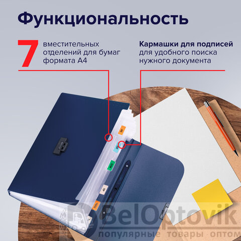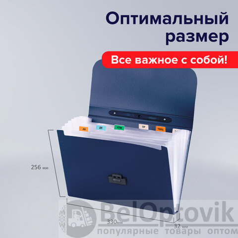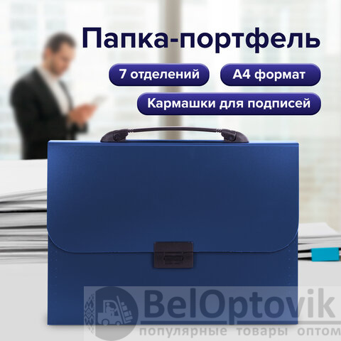 Папка-портфель пластиковая BRAUBERG "Energy" А4 (330х256х32 мм), 7 отделений, синяя, 222572