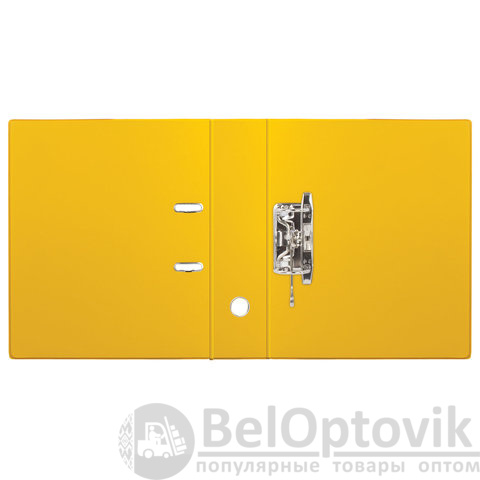 Папка формата А4 с вертикальной ориентацией изготовлена из качественного износоустойчивого картона с ПВХ покрытием с обеих сторон. Благодаря такому плотному покрытию допустима влажная уборка изделия. Ширина корешка в 70 мм позволяет разместить до 500 листов.Прорези для колец на внешней крышке позволяют оставаться папке закрытой даже при большом количестве бумаг, а надежный арочный механизм легко справляется с ежедневными нагрузками. Корешок снабжен этикеткой для маркировки содержимого, что позволяет структурировать информацию. Такая папка станет незаменимым помощником для работников с документацией, а яркий желтый цвет папки-регистратора выделит ее в ряду других.