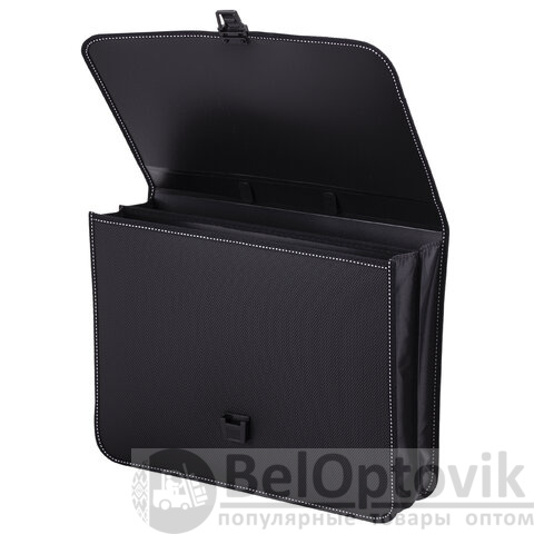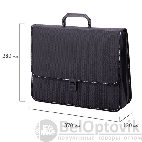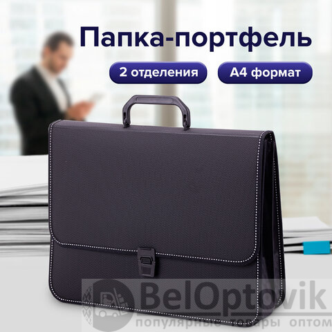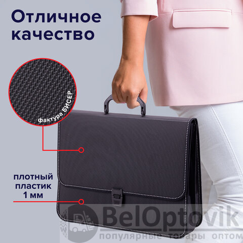 Папка-портфель пластиковая BRAUBERG "КОНСУЛ" А4 (370х280х120 мм), 2 отделения, фактура "бисер", черная, 223079