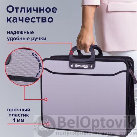 Качественное и безопасное хранение документов, удобство переноски и стильный дизайн. Благодаря папке-портфелю вы сможете контролировать рабочий процесс и подчеркнете свой профессионализм. Приобретайте папку-портфель BRAUBERG прямо сейчас!