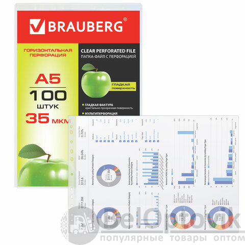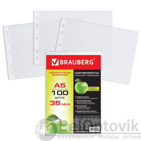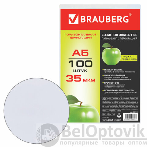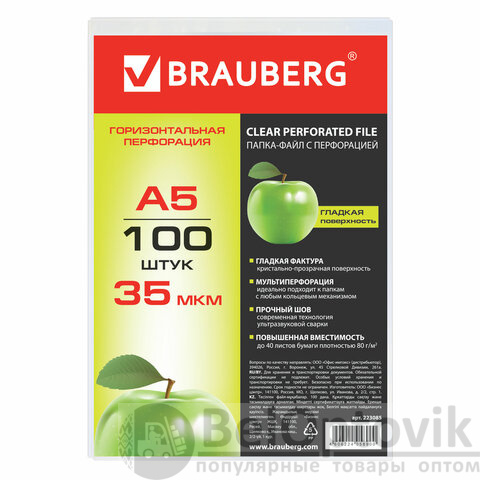 Перфорированные папки-файлы BRAUBERG предназначены для хранения документов и подходят для подшивки в папки с любым кольцевым механизмом и скоросшивателем.