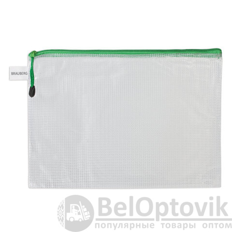 Папка-конверт на молнии А4 (335х243 мм), молния ассорти, ПВХ, сетка, прозрачная, 0,2 мм, BRAUBERG "Segment", 223886