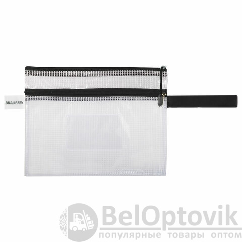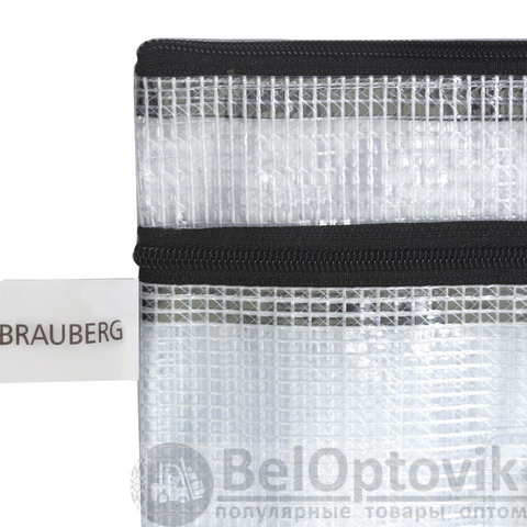 Папка-конверт на молнии МАЛОГО ФОРМАТА (238х180 мм), А5, 2 отделения, ПВХ, сетка, прозрачная, 0,3 мм, BRAUBERG "Solid", 223890