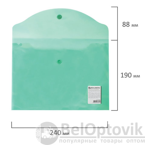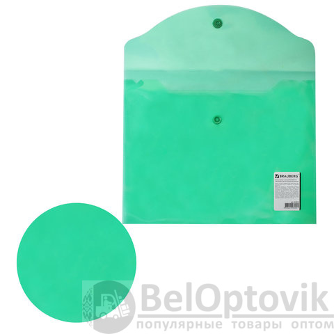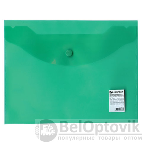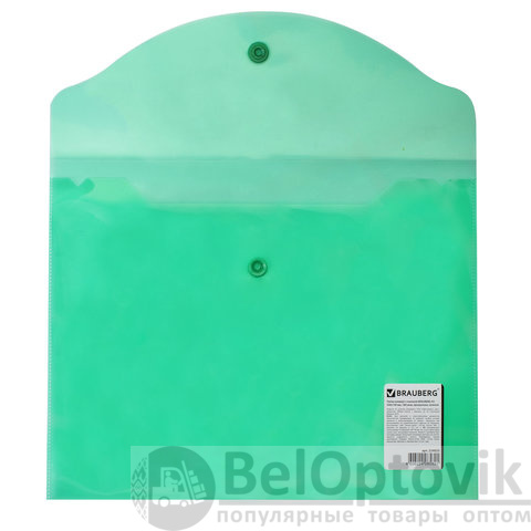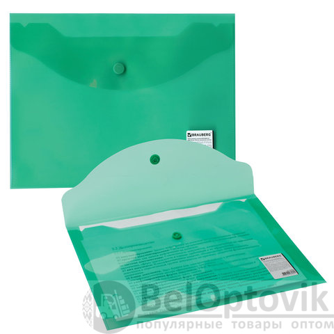 Папка-конверт с кнопкой МАЛОГО ФОРМАТА (240х190 мм), А5, прозрачная, зеленая, 0,18 мм, BRAUBERG, 224025