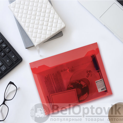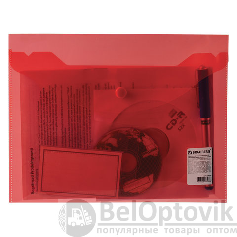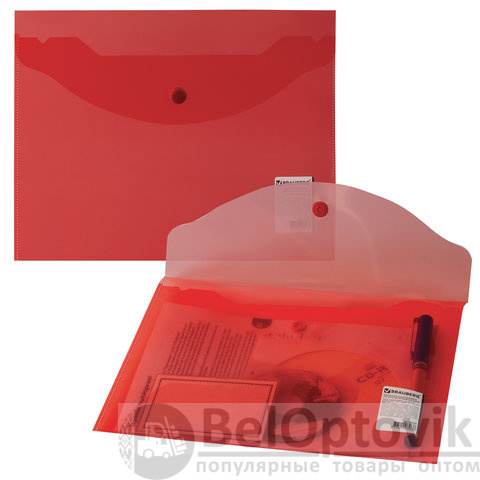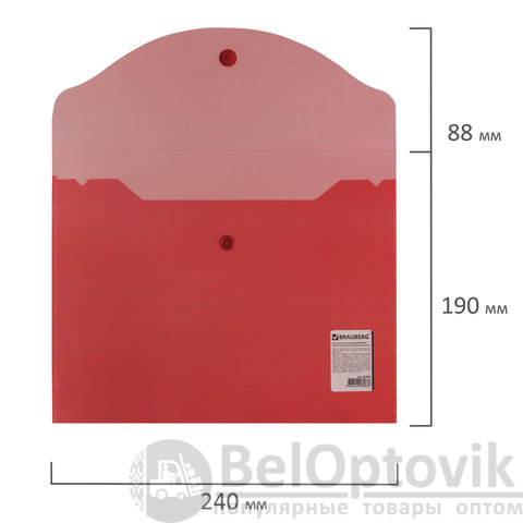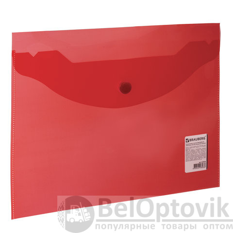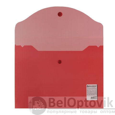 Папка-конверт с кнопкой МАЛОГО ФОРМАТА (240х190 мм), А5, прозрачная, красная, 0,18 мм, BRAUBERG, 224026