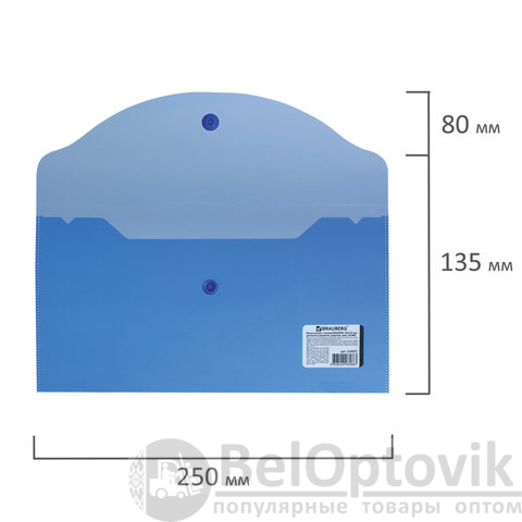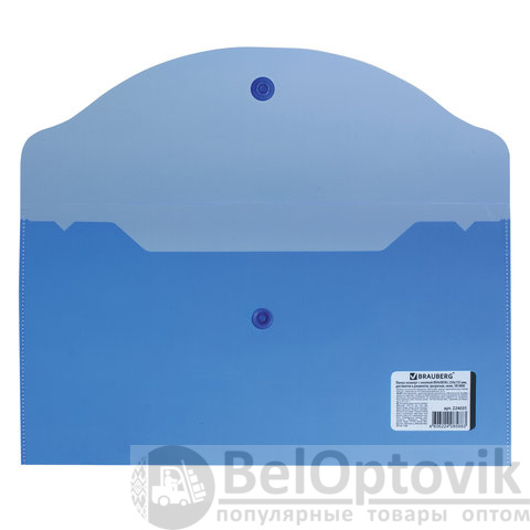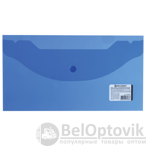Папка-конверт с кнопкой МАЛОГО ФОРМАТА (250х135 мм), прозрачная, синяя, 0,18 мм, BRAUBERG, 224031