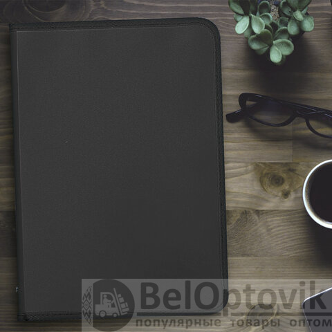 Изготовлена из прочного матового пластика толщиной 0,5 мм. Формат А4 (325х230 мм). Надежный замок-молния защищает документы от механических повреждений, а также пыли и влаги. Цвет папки - черный.