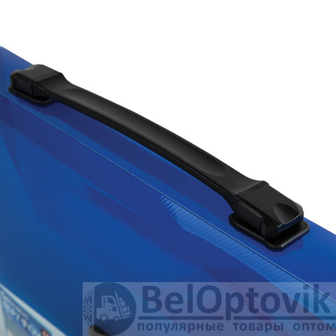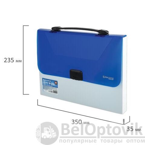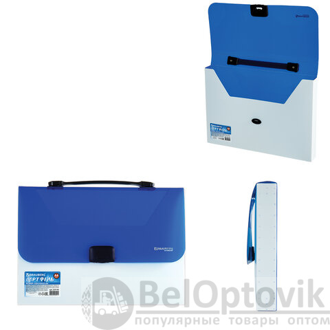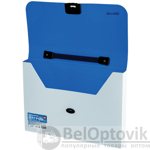 Папка-портфель пластиковая BRAUBERG INCOME А4 (350х235х35 мм), 1 отделение, фактура диагональ, белая/синяя, 224150