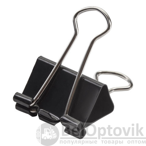 Изготовлены из стали с черным покрытием. Позволяют скреплять до 100 листов. Не деформируют бумагу. Ширина зажима - 25 мм. Поставляются по 12 штук в картонной коробке.