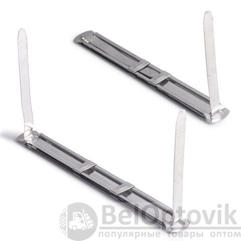 Изготовлены из металла. Механизмы надежно фиксируют бумаги. Вмещают до 400 листов. Длина ножек составляет 50 мм. Расстояние между отверстиями - 80 мм. Длина механизма - 180 мм. В комплект входит 50 штук.
