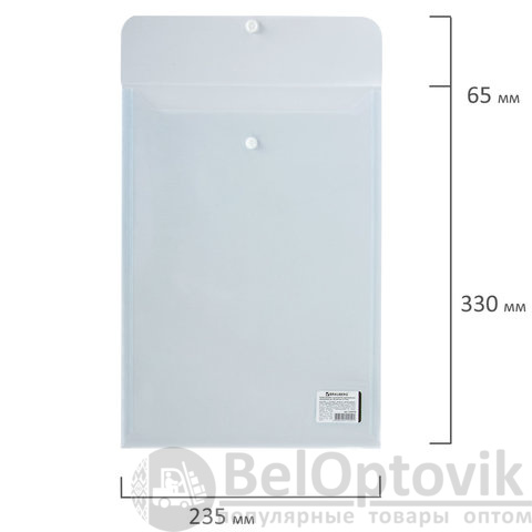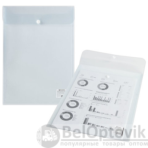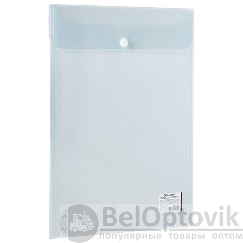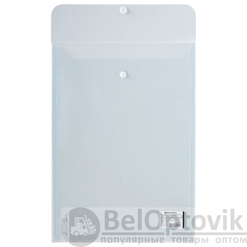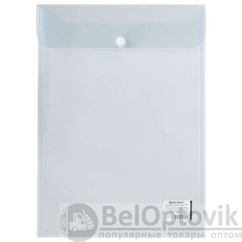 Папка-конверт с кнопкой BRAUBERG, вертикальная, А4, до 100 листов, прозрачная, 0,15 мм, 224978