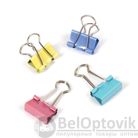 Изготовлены из стали с цветным покрытием. Позволяют скреплять до 60 листов. Не деформируют бумагу. Ширина зажима - 19 мм. Поставляются по 12 штук в картонной коробке.