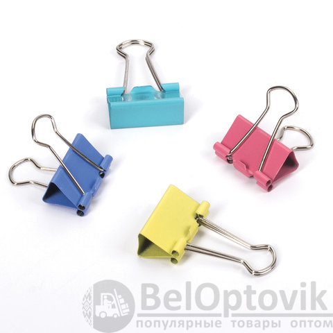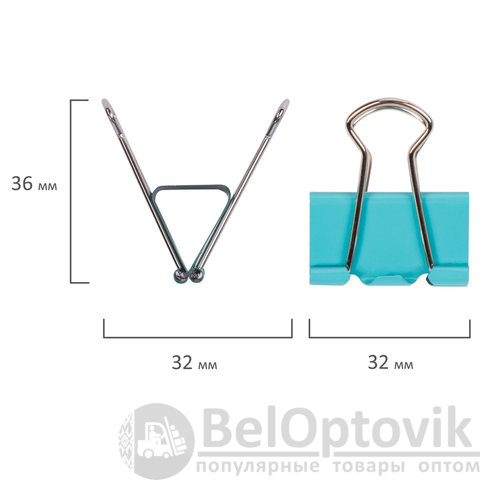 Изготовлены из стали с цветным покрытием. Позволяют скреплять до 140 листов. Не деформируют бумагу. Ширина зажима - 32 мм. Поставляются по 12 штук в картонной коробке.