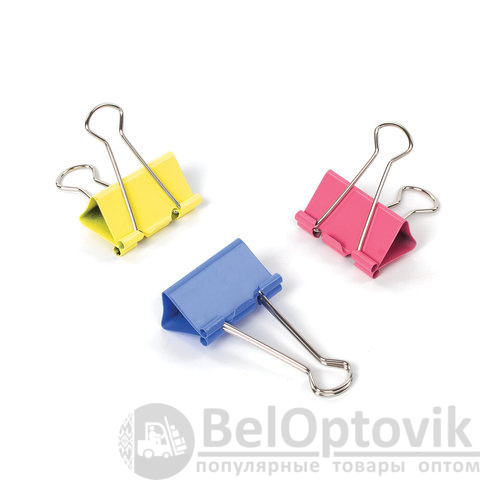 Изготовлены из стали с цветным покрытием. Позволяют скреплять до 200 листов. Не деформируют бумагу. Ширина зажима - 41 мм. Поставляются по 12 штук в картонной коробке.