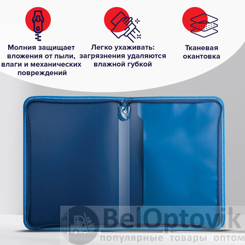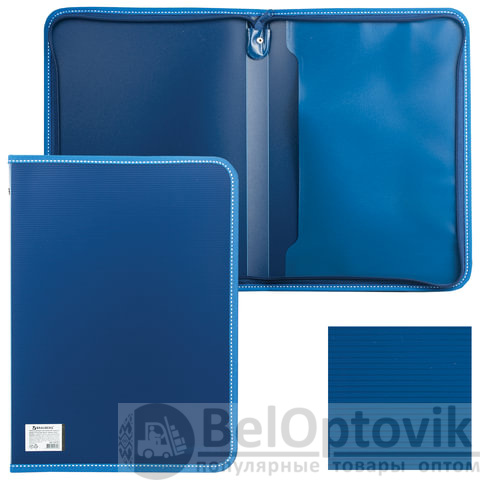 Папка на молнии пластиковая BRAUBERG "Contract", А4, 335х242 мм, внутренний карман, синяя, 225161