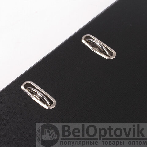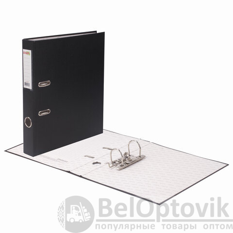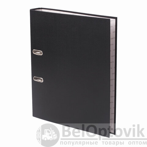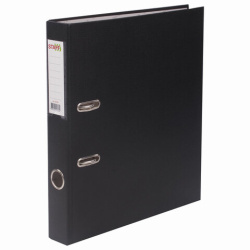 Папка формата А4 с вертикальной ориентацией изготовлена из качественного износоустойчивого картона, покрытого ПВХ. Благодаря такому плотному покрытию допустима влажная уборка изделия. Ширина корешка в 50 мм позволяет разместить до 350 листов. Прорези для колец на внешней крышке позволяют оставаться папке закрытой даже при большом количестве бумаг, а надежный арочный механизм легко справляется с ежедневными нагрузками. Корешок снабжен этикеткой для маркировки содержимого, что позволяет структурировать информацию. Выполнена в классическом черном цвете.