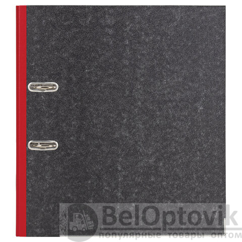 Папка формата А4 с вертикальной ориентацией изготовлена из высококачественного износоустойчивого картона с покрытием под "мрамор". Ширина корешка в 75 мм позволяет разместить до 500 листов. Нижние края папки защищены металлическими уголками, что увеличивает срок службы в 2 раза. Прорези для колец на внешней крышке позволяют оставаться папке закрытой даже при большом количестве бумаг, а надежный арочный механизм легко справляется с ежедневными нагрузками. Красный корешок снабжен этикеткой для маркировки содержимого, что позволяет структурировать информацию.