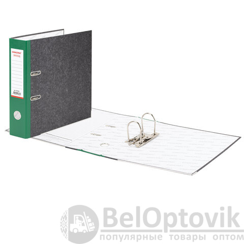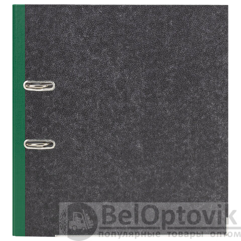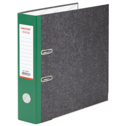 Папка формата А4 с вертикальной ориентацией изготовлена из высококачественного износоустойчивого картона с покрытием под "мрамор". Ширина корешка в 75 мм позволяет разместить до 500 листов. Нижние края папки защищены металлическими уголками, что увеличивает срок службы в 2 раза. Прорези для колец на внешней крышке позволяют оставаться папке закрытой даже при большом количестве бумаг, а надежный арочный механизм легко справляется с ежедневными нагрузками. Зеленый корешок снабжен этикеткой для маркировки содержимого, что позволяет структурировать информацию.