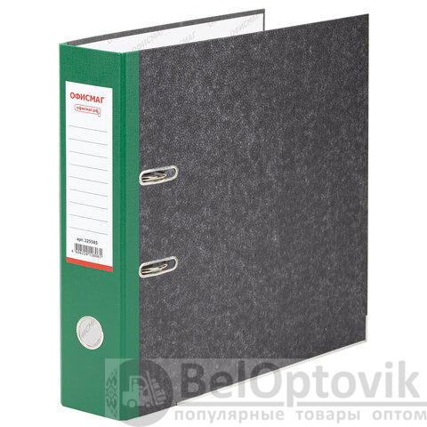 Папка-регистратор ОФИСМАГ, фактура стандарт, с мраморным покрытием, 75 мм, зеленый корешок, 225585