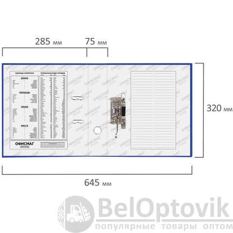 Папка-регистратор ОФИСМАГ с арочным механизмом, покрытие из ПВХ, 75 мм, синяя, 225749