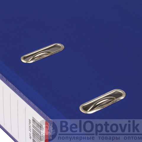 Папка формата А4 с вертикальной ориентацией изготовлена из качественного износоустойчивого картона с ПВХ покрытием. Благодаря такому плотному покрытию допустима влажная уборка изделия. Ширина корешка в 75 мм позволяет разместить до 500 листов. Прорези для колец на внешней крышке позволяют оставаться папке закрытой даже при большом количестве бумаг, а надежный арочный механизм легко справляется с ежедневными нагрузками. Корешок снабжен этикеткой для маркировки содержимого, что позволяет структурировать информацию. Выполнена в синем цвете.