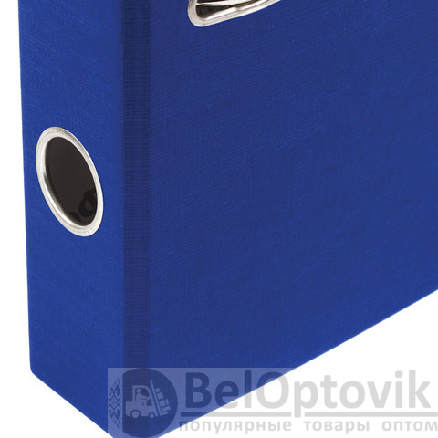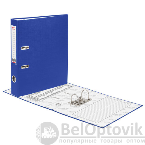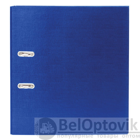 Папка формата А4 с вертикальной ориентацией изготовлена из качественного картона с ПВХ покрытием. Благодаря такому плотному покрытию допустима влажная уборка изделия. Ширина корешка в 50 мм позволяет разместить до 350 листов. Прорези для колец на внешней крышке позволяют оставаться папке закрытой даже при большом количестве бумаг, а надежный арочный механизм легко справляется с ежедневными нагрузками. Корешок снабжен этикеткой для маркировки содержимого, что позволяет структурировать информацию. Выполнена в синем цвете.