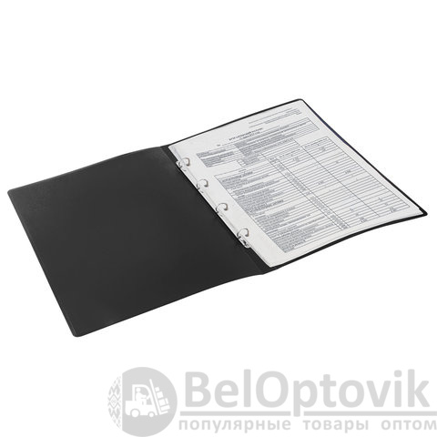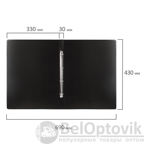 Папка на 4 кольцах БОЛЬШОГО ФОРМАТА А3, ВЕРТИКАЛЬНАЯ, 30 мм, черная, 0,8 мм, BRAUBERG "Стандарт", 225766