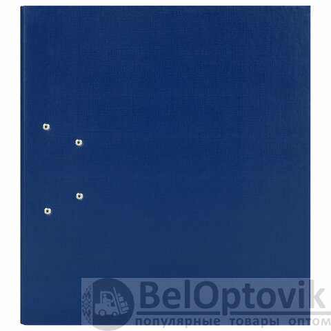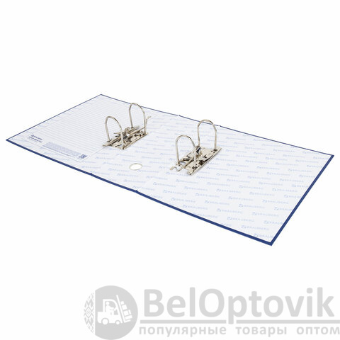 Папка синего цвета вмещает до 800 листов. Снаружи изделие покрыто ПВХ, а внутри – бумагой.