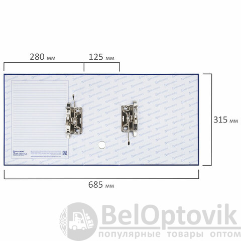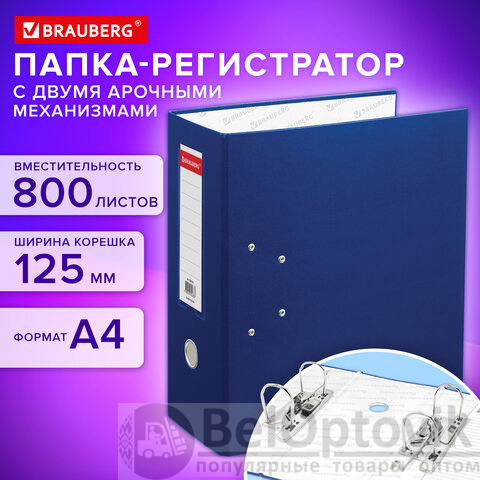 Папка-регистратор BRAUBERG с двумя арочными механизмами (до 800 листов), покрытие ПВХ, 125 мм, синяя, 226054