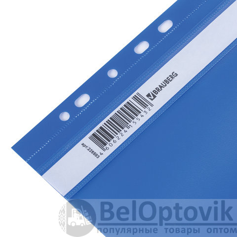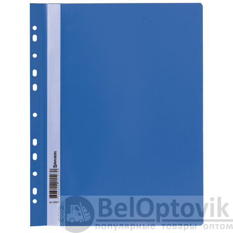 Скоросшиватель пластиковый с перфорацией BRAUBERG, А4, 140/180 мкм, синий, 226583