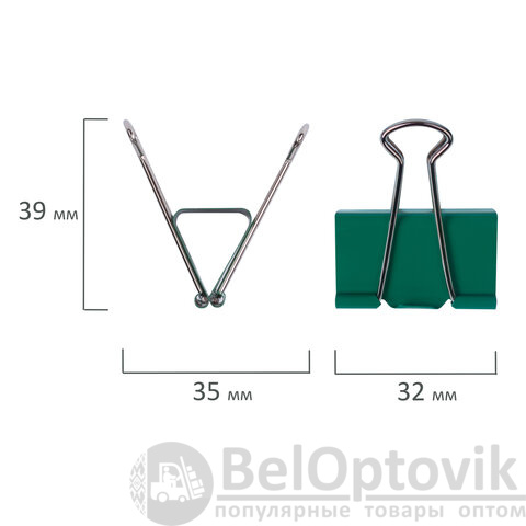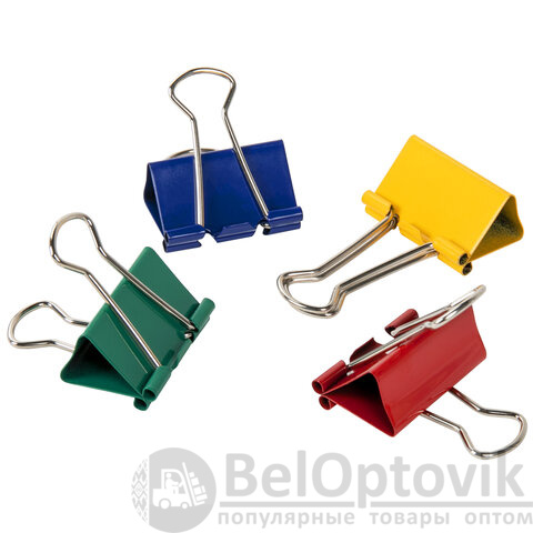 Изготовлены из стали с цветным покрытием. Позволяют скреплять до 140 листов. Не деформируют бумагу. Ширина зажима - 32 мм. Поставляются по 12 штук в картонной коробке.